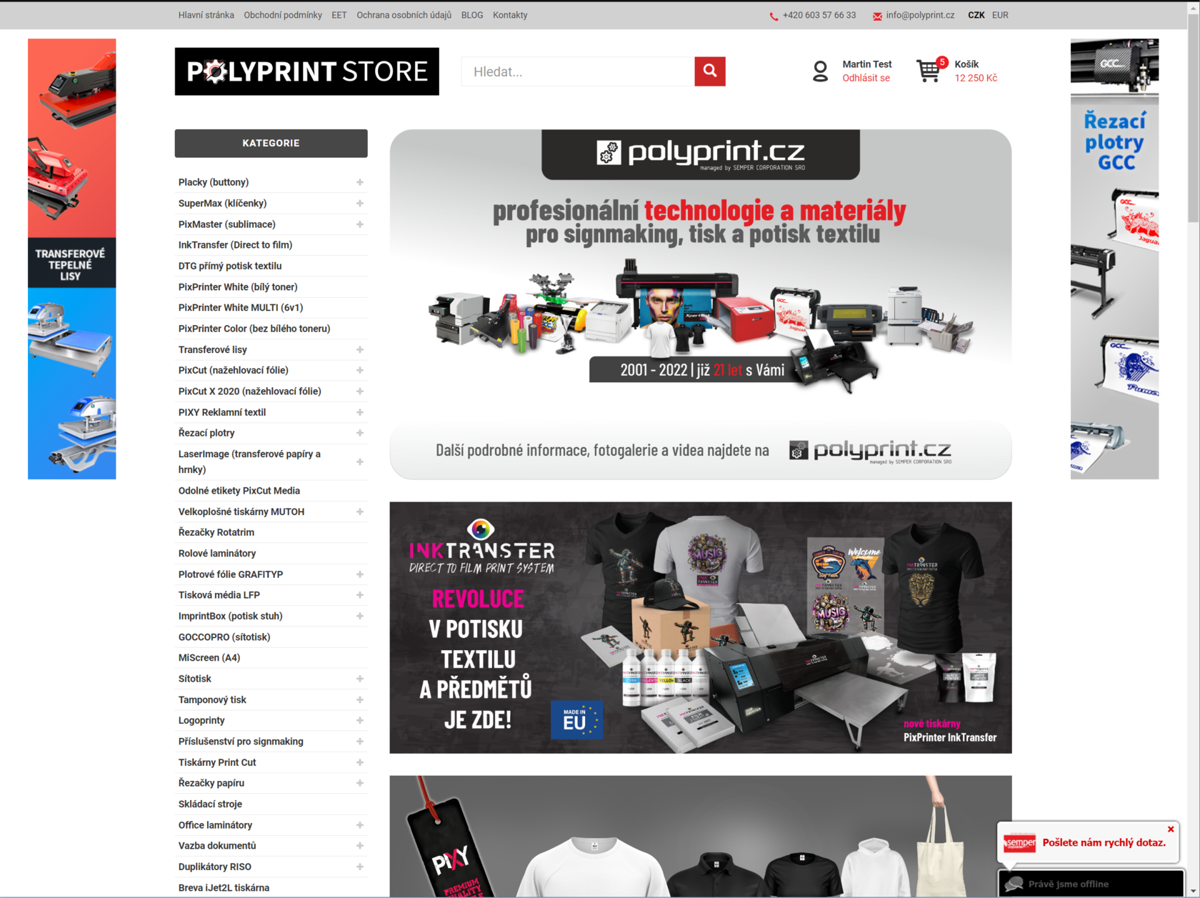 Pořiďte si DTF archovou nebo rolovou tiskárnu PixPrinter InkTransfer a nabídněte